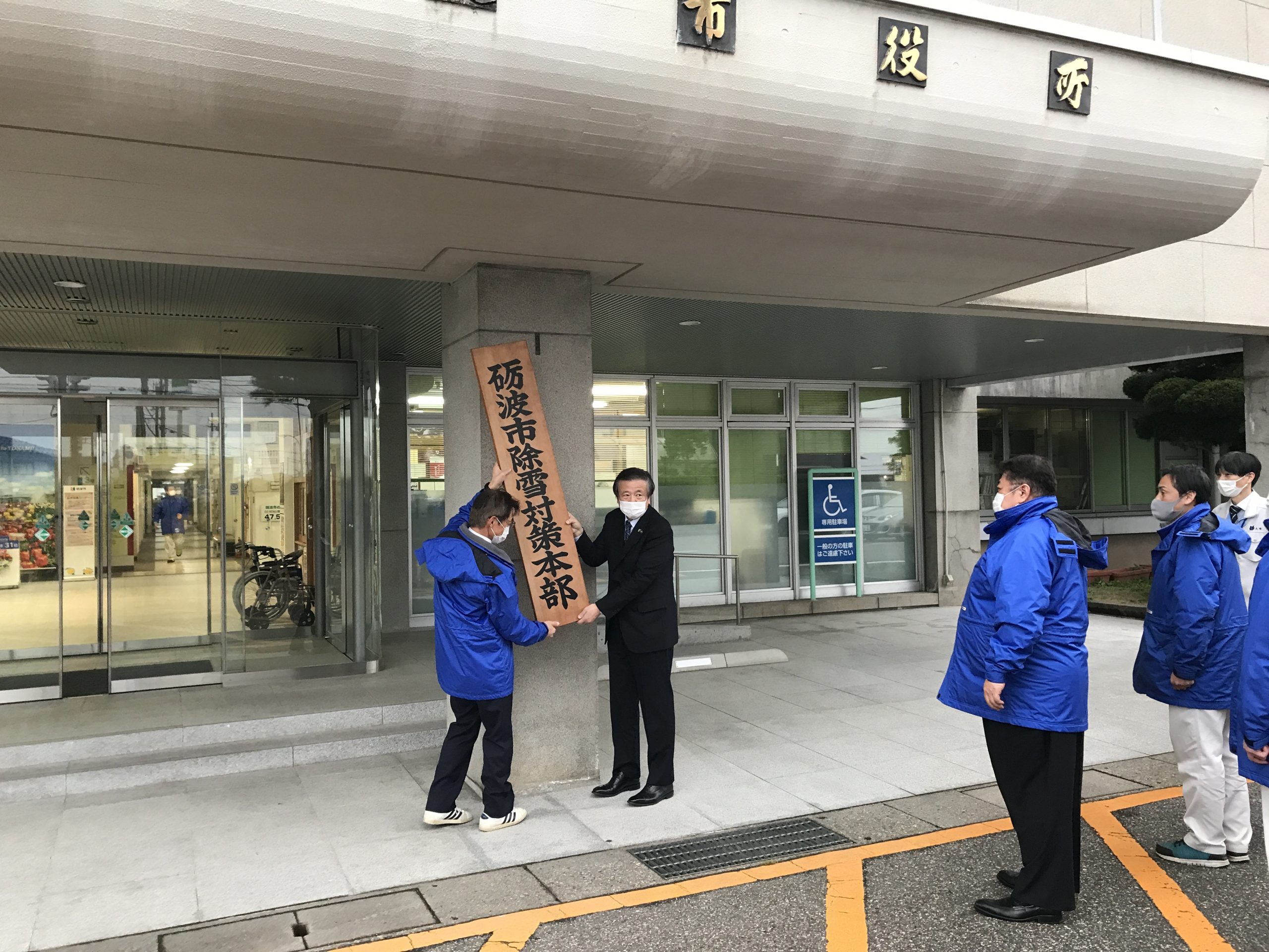 - 31日(木) 砺波市除雪対策本部看板降納式<本庁正面玄関>