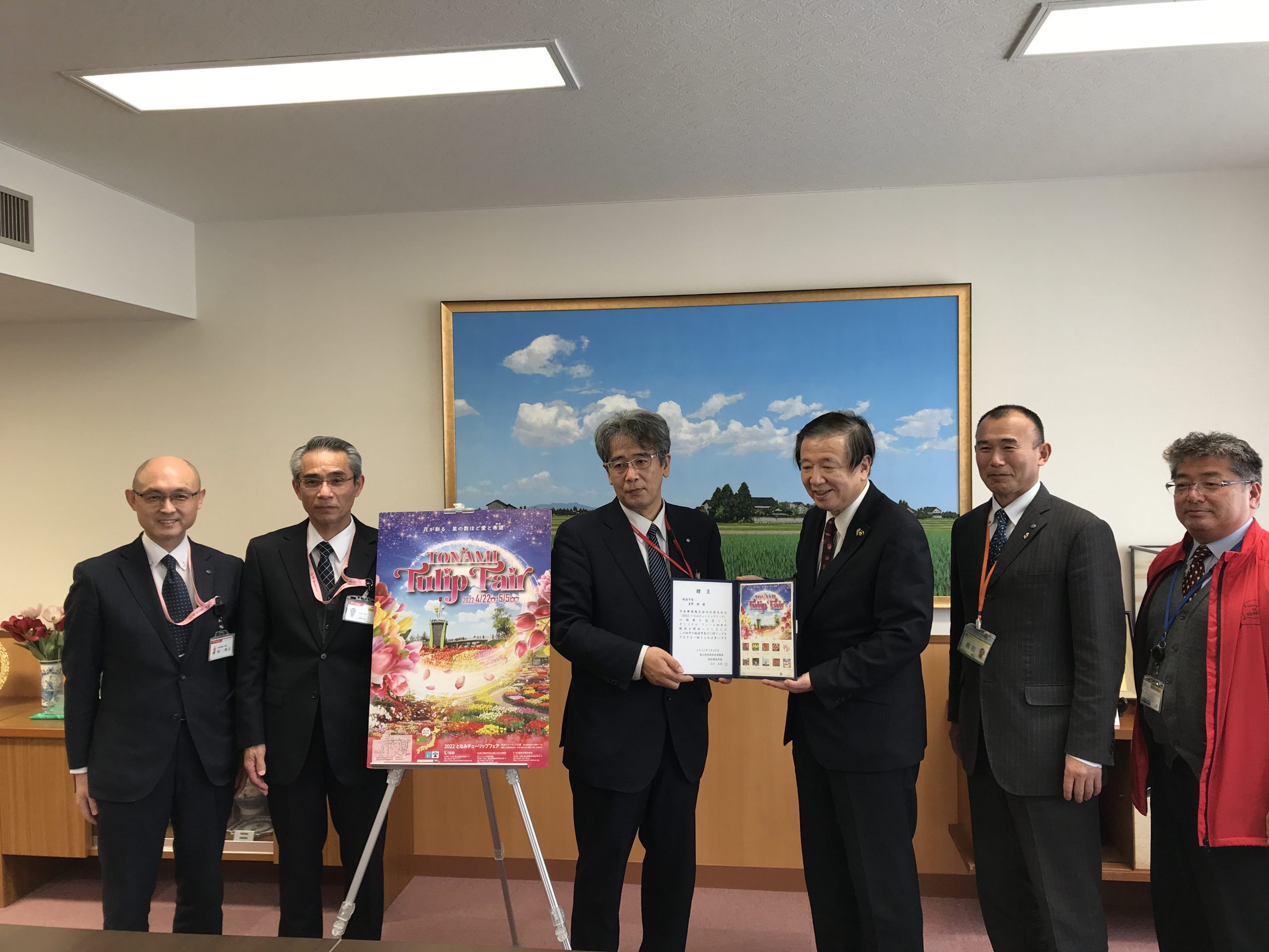 - 22日(火) 2022となみチューリップフェアオリジナルフレーム切手贈呈式<市長応接室>