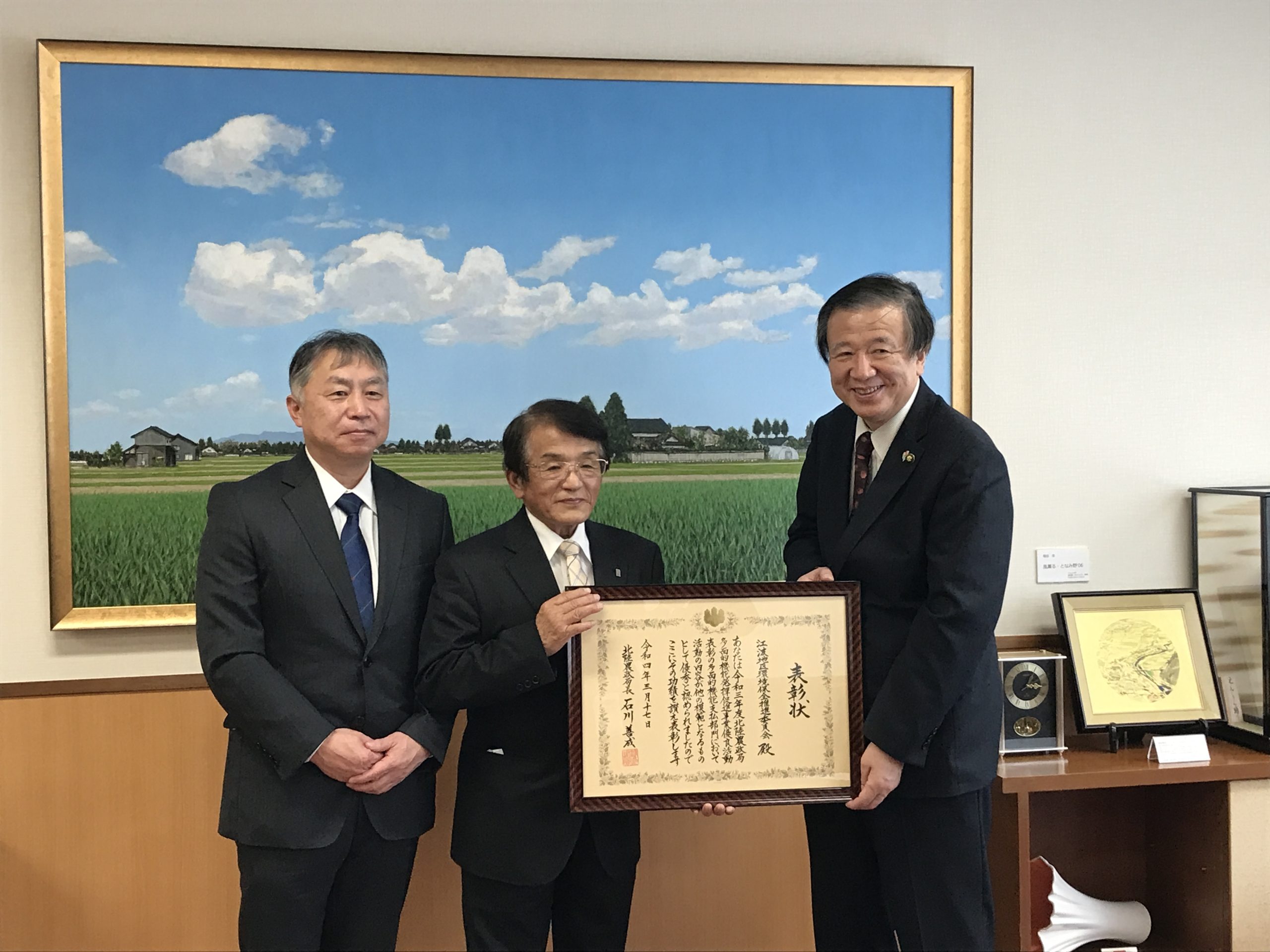 - 22日(火) 北陸農政局多面的機能発揮促進事業優良活動表彰受賞報告<市長応接室>
