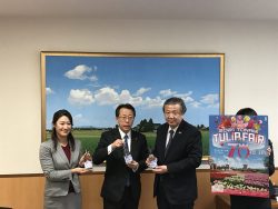 - 14日(月) 砺波切花研究会よりチューリップ花束の寄贈応対<市長応接室>